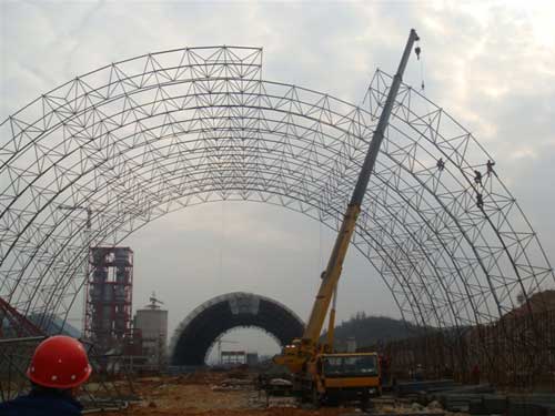 新疆水泥廠網(wǎng)架工程施工現(xiàn)場(chǎng)